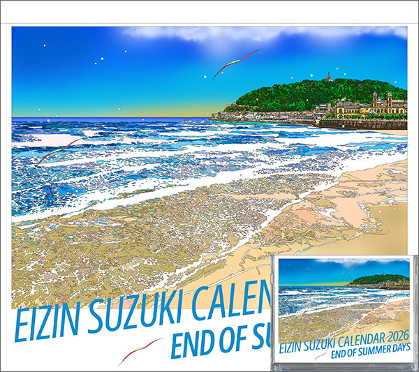 2026年版カレンダーセット 3,300円(税別) TYPE: カレンダー YEAR: 2026 SET :壁掛+卓上 ※壁掛カレンダー・卓上カレンダーの内容は、それぞれのページをご覧ください。 壁掛カレンダー 卓上カレンダー 【鈴木英人カレンダー】 2026年版壁掛カレンダー 2026年版卓上カレンダー END OF SUMMER DAYS 夏の終わりのサンセバスチャン